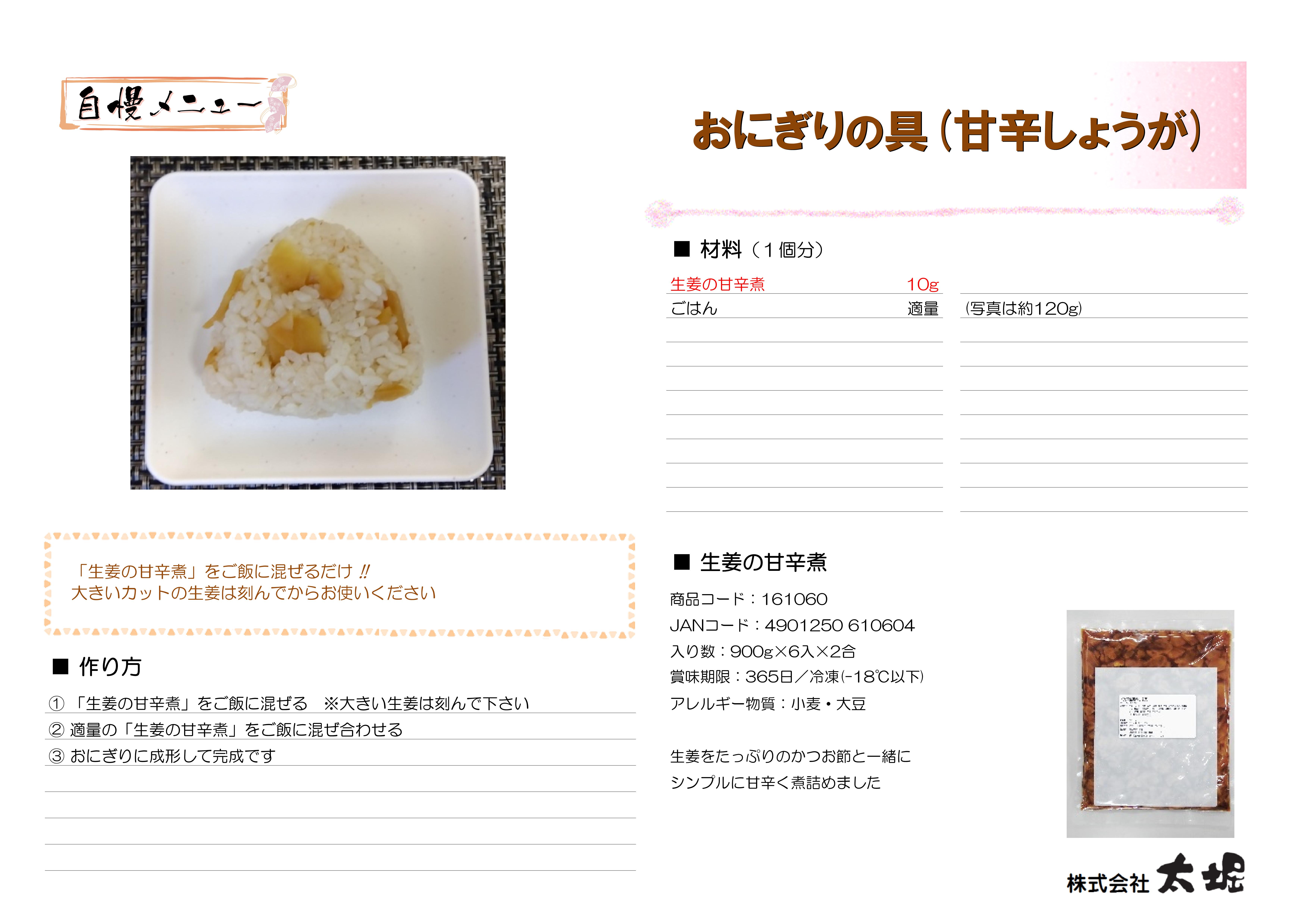 薄くスライスした生姜とたっぷりのかつお節を甘く炊きました。甘さの中に生姜の香りと辛みが引き立つ一品です。米飯との相性が良く、おにぎりの具材としても人気です。 900gと250gの規格がございます。